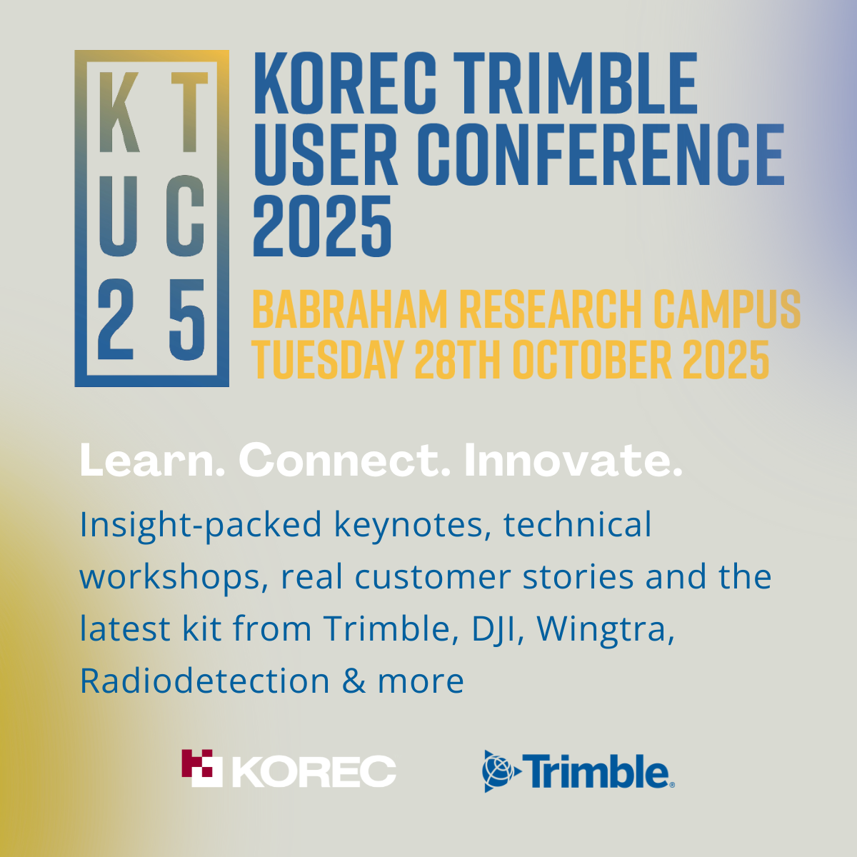 The KOREC Trimble User Conference is happening on the 28th October 2025. Connect with experts and learn the latest techniques with four tracks including insightful keynotes, technical workshops, customer stories and more.
