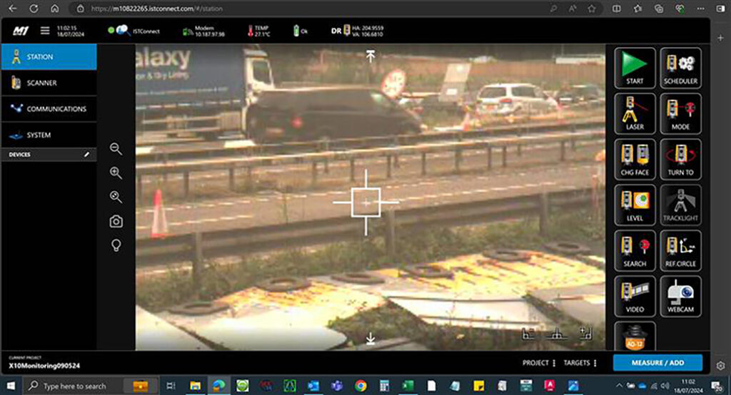 As a long term KOREC customer and Trimble user, Balfour Beatty engineers on this site are familiar with Trimble equipment and workflows. Consequently, four Trimble S7 Total Stations, renowned for both their high precision and reliability in all weather conditions were purchased, later supplemented with four additional S7s also hired from KOREC. When used in conjunction with Trimble 4D Control software (T4D) for automated movement detection and monitoring of infrastructure, these total stations became a straightforward to use and highly effective monitoring solution.