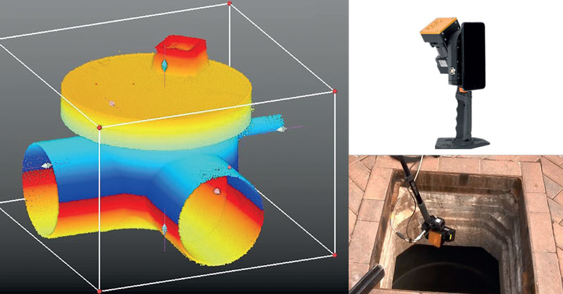 LSTC undertakes work on behalf of major house building companies including the provision of as-built S104 information. These as-builts provide the details that determines whether a sewer is suitable for adoption by the water utility company with each survey requiring accurate invert information backed up by video footage. LSTC’s priority is keeping its surveyors safe whilst providing clients with the high-quality data they need. Manhole chambers present a significant health and safety risk and the only alternative to using a remote data collection sensor is working within the chamber which requires staff to be trained in working in confined spaces with gas monitoring equipment. The company therefore worked closely with GeoSLAM’s UK distributor, KOREC, to trial a ZEB-REVO RT handheld scanner. The ZEB-REVO RT allows the user to quickly collect and process scan data on the move at a rate of 40,000 points per second and up to a range of 30m.