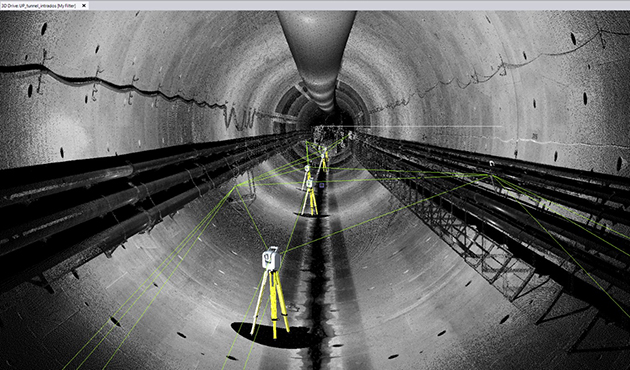 TBC view of the tunnel scans with SX12 resections using existing tunnel control highlighted