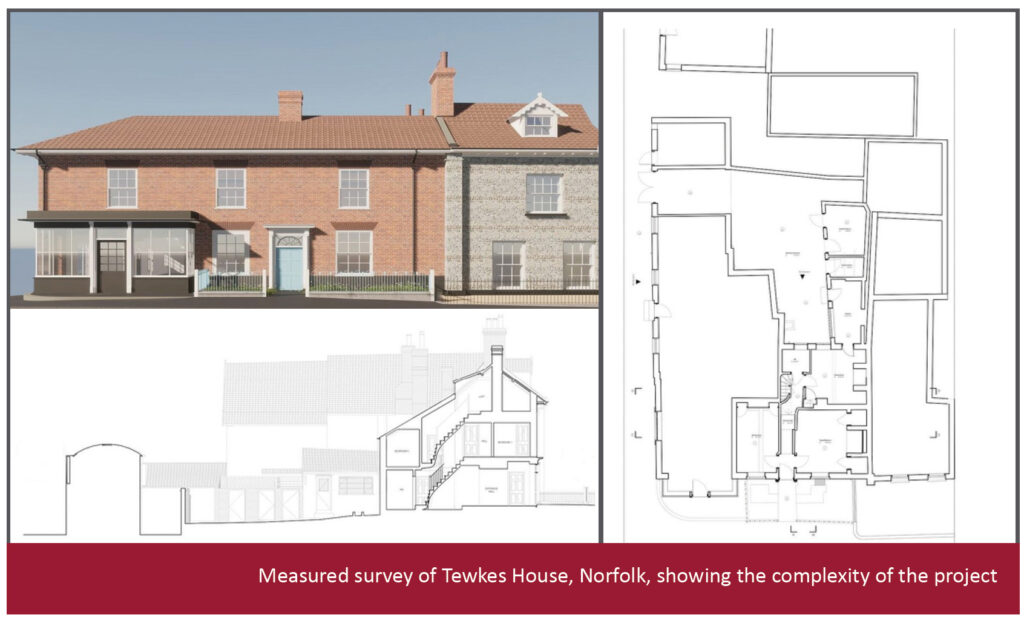 On-site registration: Ensuring Will can check that no data has been missed before he leaves the site. This feature is especially useful for complex projects such as a recent survey of Hewkes House, a listed building in Norfolk with many different levels, pitch roofs, low ceilings and listed building features such as architraves, switches and skirting boards. This job was completed on a ten day turnaround with a scan time of 3-4 hours compared to an estimated survey time of two people and 1.5-2 days with a total station.