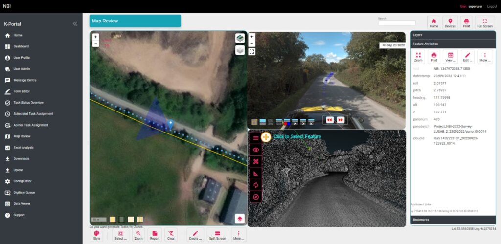 Under the guidance of Jorvik Design Group Network Planner, Mahmoud Ali, the point cloud is then processed and split into smaller jobs for the design team. A KOREC developed portal and plug-in allows the MX50 collected data to be automatically loaded as a layer for immediate use in their QGIS.