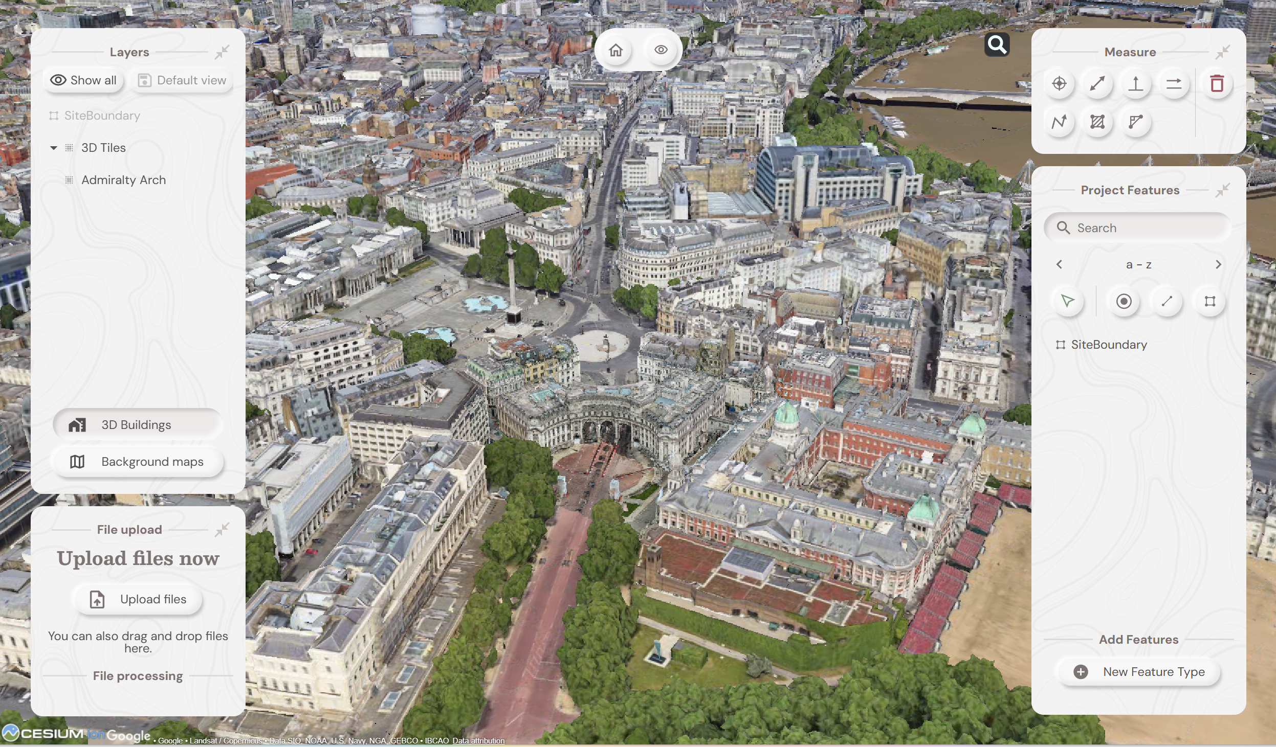 It provides a unique view of your data compared to other platforms: Well, how does it do that? The answer is it provides context around your dataset and positions it in the real world. For example, your laser scan point cloud doesn’t sit in a black space, it’s positioned on to the background map of your choice from OS to Google to Bing. This opens up new doors with your clients. It’s all about making your data set relevant for its end users by providing visualisation in a rich 3D environment with analysis and measurement tools thrown in.