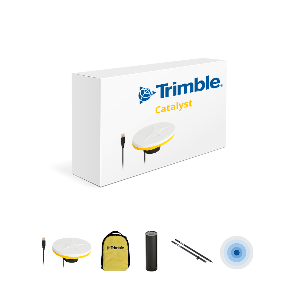 Entry-level Catalyst package including DA2 hardware, 2m carbon fibre pole, and 1cm monthly subscription for high-accuracy GNSS positioning.