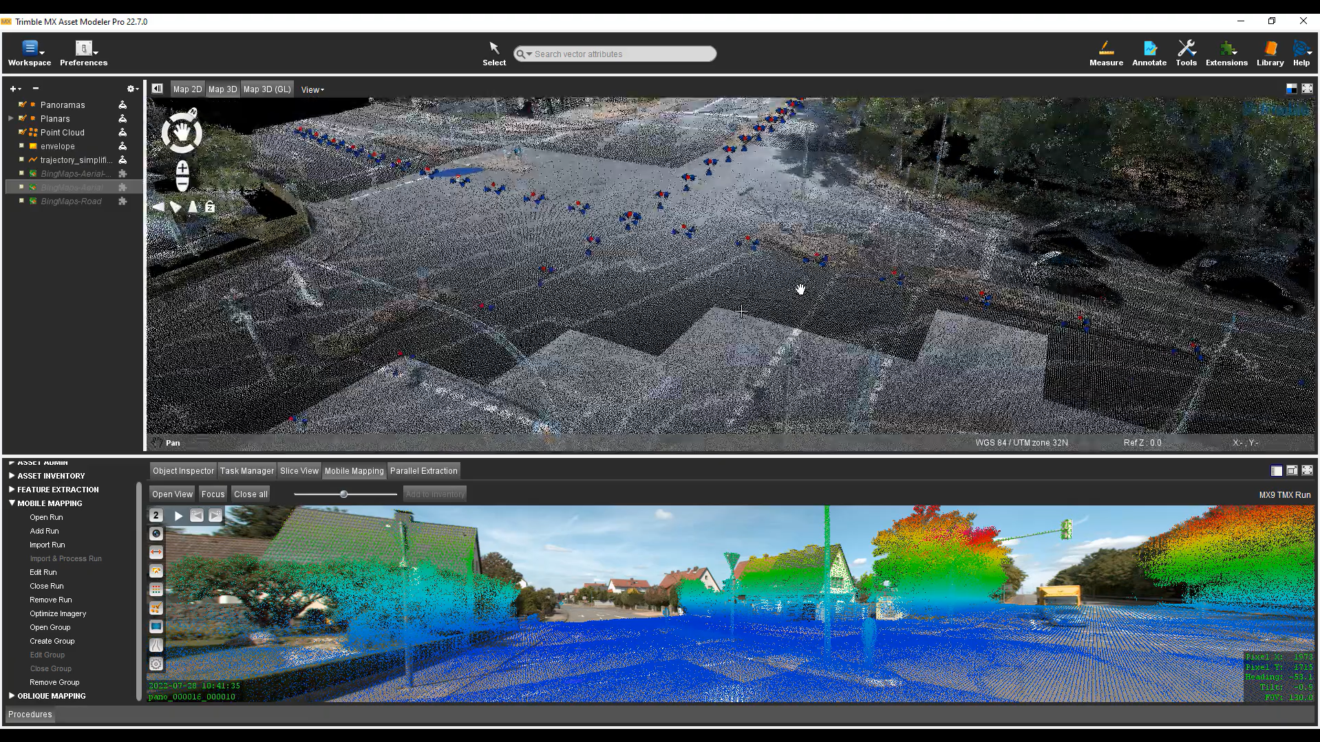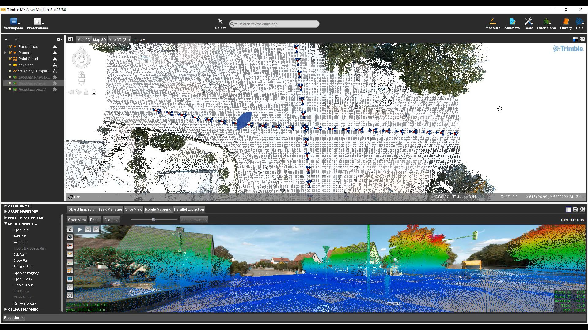Trimble MX software – an all-in-one desktop solution – makes mobile mapping data management and feature extraction simple, automated, and efficient. Trimble MX software imports reality data captured by any mobile mapping device. A complete system-agnostic solution, it can handle unlimited point cloud, imagery, and 3D mapping data.