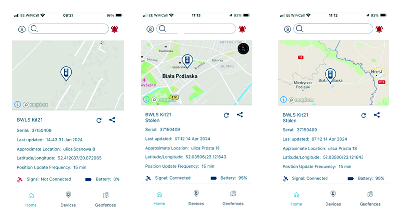 However, three weeks later, the signal became active again allowing Reece to track its movement around the Warsaw area and at this stage significant progress was made. Through TSA, Survey Solutions were put in touch with the intelligence-led security solutions company DeterTech (formerly SmartWater), who work in alliance with TSA to coordinate a response to thieves who persistently target surveyors.