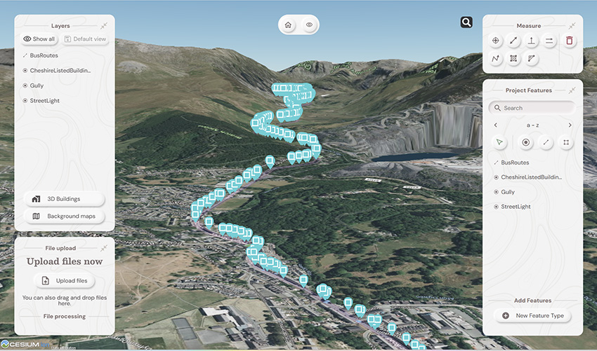It provides a unique view of your data compared to other platforms: Well, how does it do that? The answer is it provides context around your dataset and positions it in the real world. For example, your laser scan point cloud doesn’t sit in a black space, it’s positioned on to the background map of your choice from OS to Google to Bing. This opens up new doors with your clients. It’s all about making your data set relevant for its end users by providing visualisation in a rich 3D environment with analysis and measurement tools thrown in.